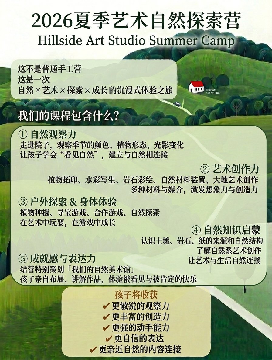 ❋ Artistic CreativityPlant rubbing, watercolor sketching, rock painting, natural material installation, land art creation. A variety of materials and mediums inspire imagination and creativity.